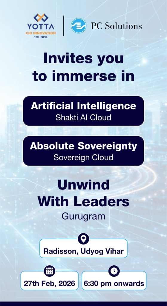 Co-hosted by Yotta Data Services and PC Solutions, the session focuses on real-world discussions around AI and Sovereign Cloud adoption, with an emphasis on control, compliance, and resilience.